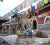 天王殿殿前月臺(tái)上,置一對(duì)石獅,系唐代遺物。其基座為5層須彌座,長(zhǎng)1.82米,寬0.95米,高1.04米,中間束腰浮雕飛龍團(tuán)云,上下兩層浮雕蓮花;石獅身長(zhǎng)1.6米...